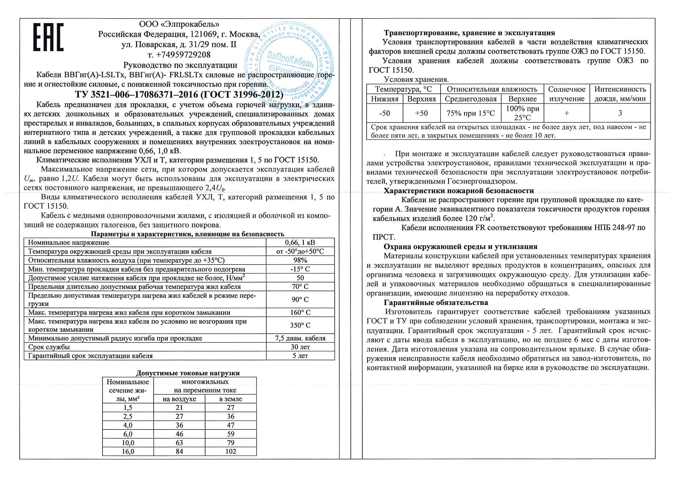| Производитель | Элпрокабель |