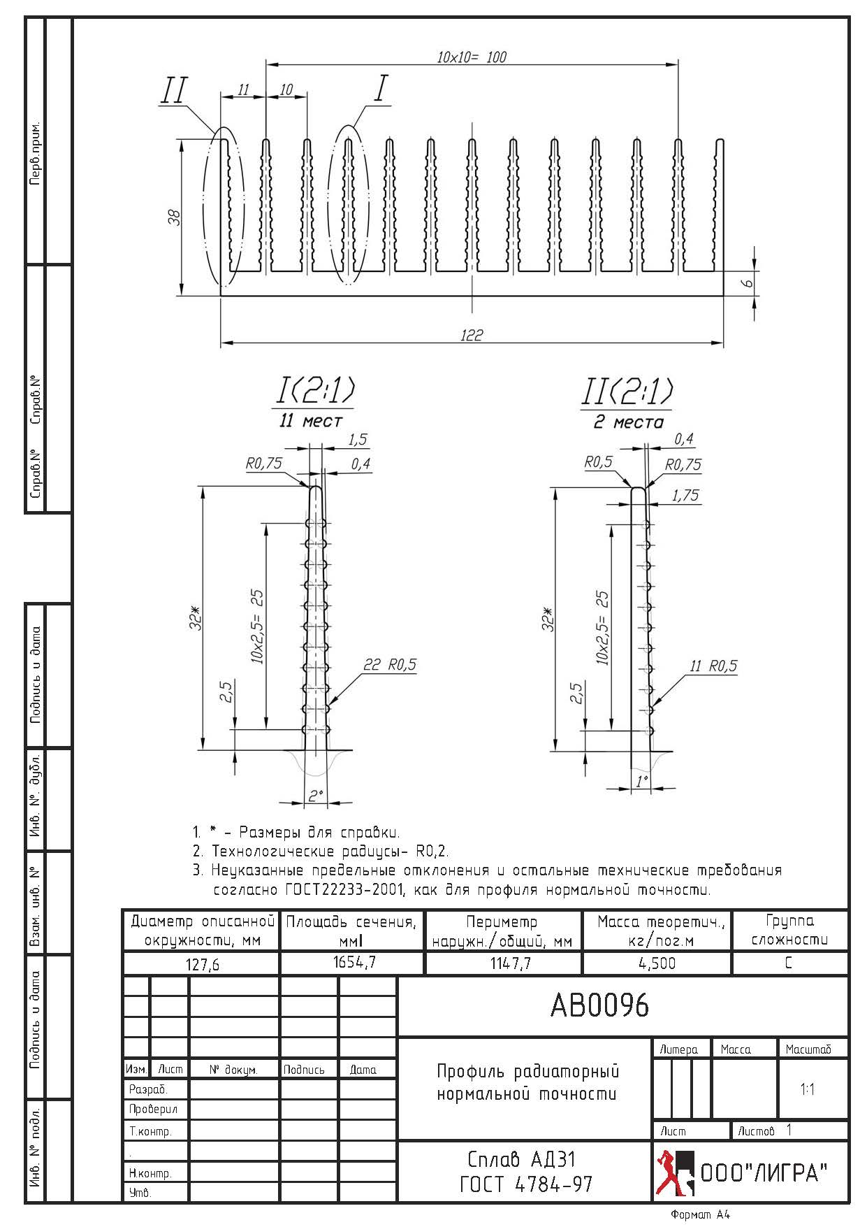 | Описание | Профиль радиаторный прессованный нормальной точности |