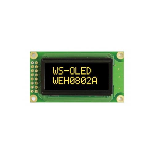 WEH000802ALPP5N00100 (000802ALPP5N00100) — OLED символьный 8х2 (0802А), желтый, 8-битный паралл. интерфейс 6800, VDD = 3.0 ... 5.3 В, -40...+80С.