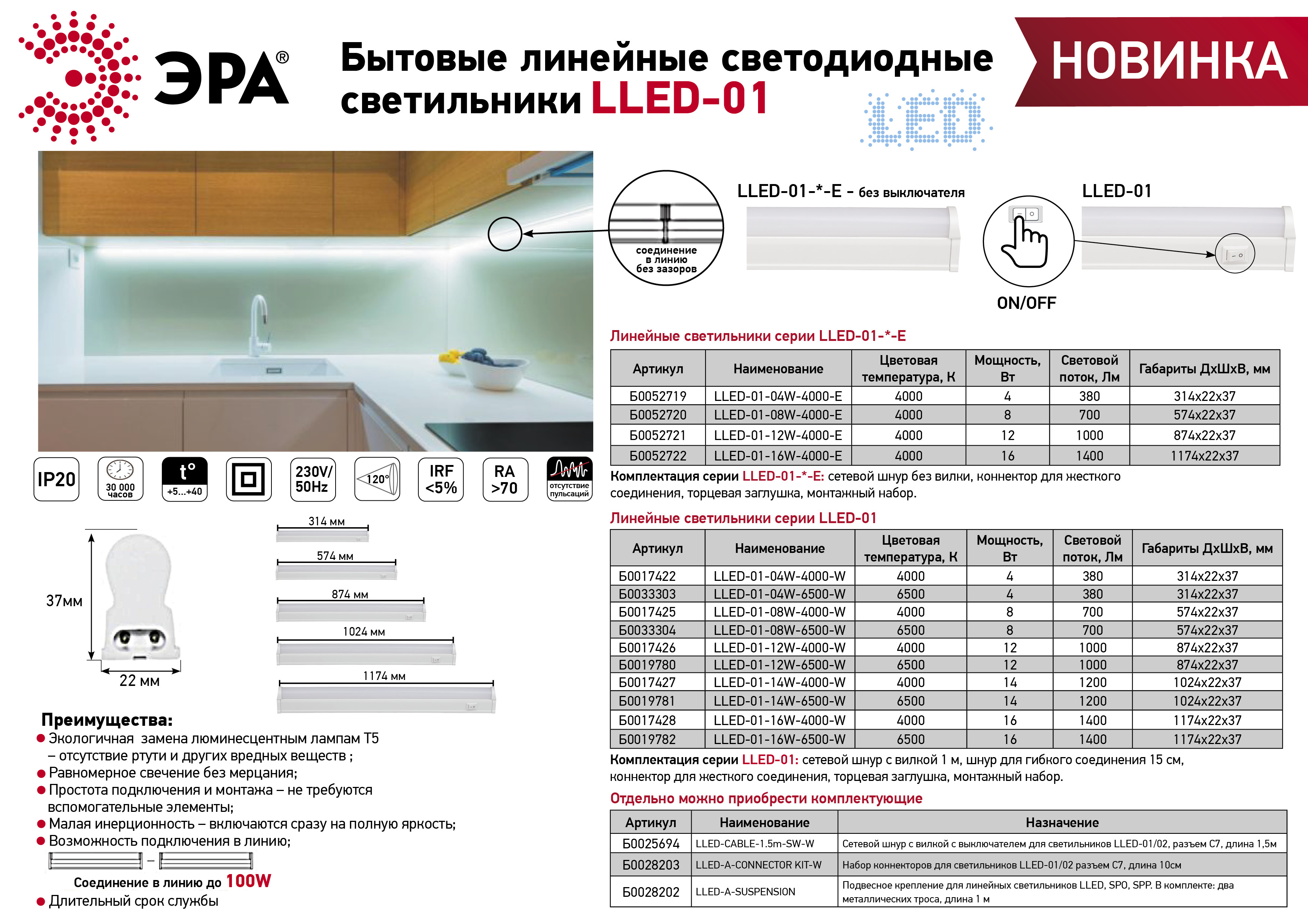 Светильник светодиодный LLED-01-04W-4000-E 4Вт 4000К L311мм линейный Б0052719 (Светильник светодиодный LLED-01-04W-4000-E 4Вт 4000К L311мм линейный Б0052719) — Электронный компонент.