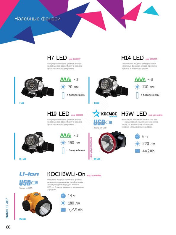Купить Фонарь аккумуляторный налобный H3W LED 3Вт 2 режима литиевый аккум. 1.5А.ч ЗУ USB KOCH3WLi-On оптом или в розницу в Москве, доставка по России. Цена от 410,50 руб.. Условия оплаты и доставки уточняйте у менеджеров.
