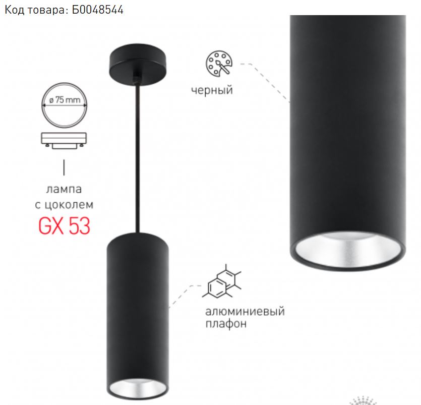 PL12 GX53 BK/SL Подсветка Подвесной светильник под лампу GX53, алюминий, цвет черный+серебро Б0048544 (12 GX53 BK/SL Подсветка Подвесной светильник под лампу GX53, алюминий, цвет черный+серебро Б0048544) — Электронный компонент.