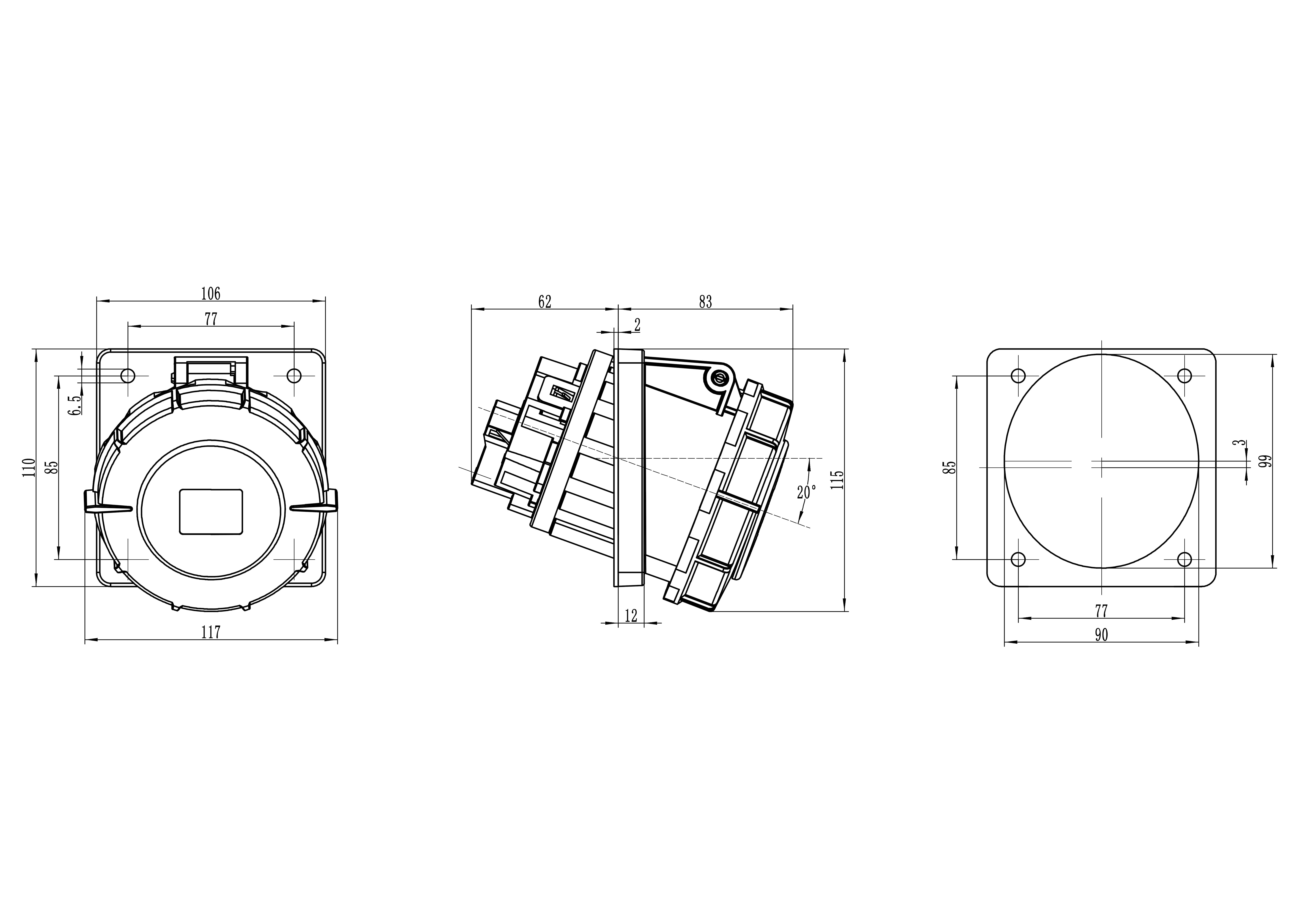 Розетка панельная с наклоном IP67 63A 3P+E 400В DIS4156366 — Электронный компонент