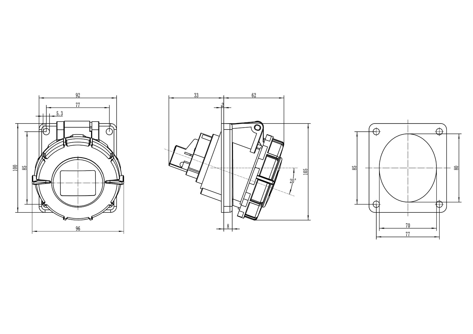Розетка панельная с наклоном IP67 16A 3P+E+N 400В DIS4181667 — Электронный компонент