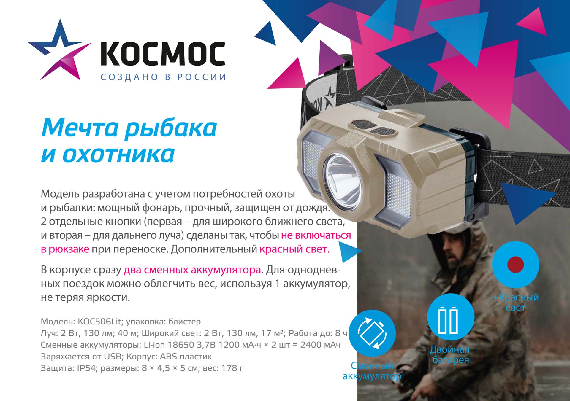Фонарь аккумуляторный налобный 2Вт LED+2Вт SMD LED+красн. съемные Li-ion 2x18650 1200мА.ч=2400 мА.ч корпус ABS-пластик USB-шнур регулируемый эласт. ремешок KOC506Lit (Фонарь аккумуляторный налобный 2Вт LED+2Вт SMD LED+красн. съемные Li-ion 2x18650 1200мА.ч=2400 мА.ч корпус ABS-пластик USB-шнур регулируемый эласт. ремешок KOC506Lit) — Электронный компонент.