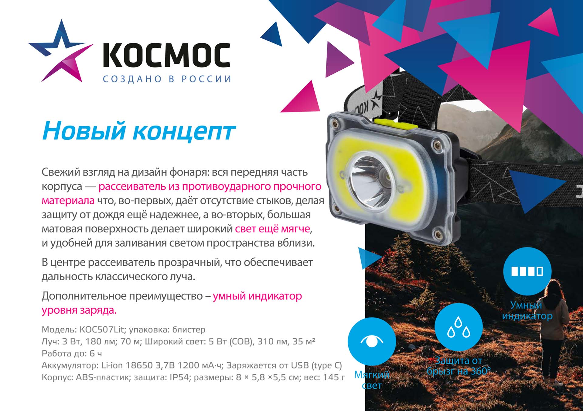 Фонарь аккумуляторный налобный 3Вт XPE LED+5Вт COB LED Li-ion 18650 1200мА.ч корпус ABS-пластик индикатор уровня заряда USB-шнур type C регулируемый эласт. ремешок KOC507Lit (Фонарь аккумуляторный налобный 3Вт XPE LED+5Вт COB LED Li-ion 18650 1200мА.ч корпус ABS-пластик индикатор уровня заряда USB-шнур type C регулируемый эласт. ремешок KOC507Lit) — Электронный компонент.