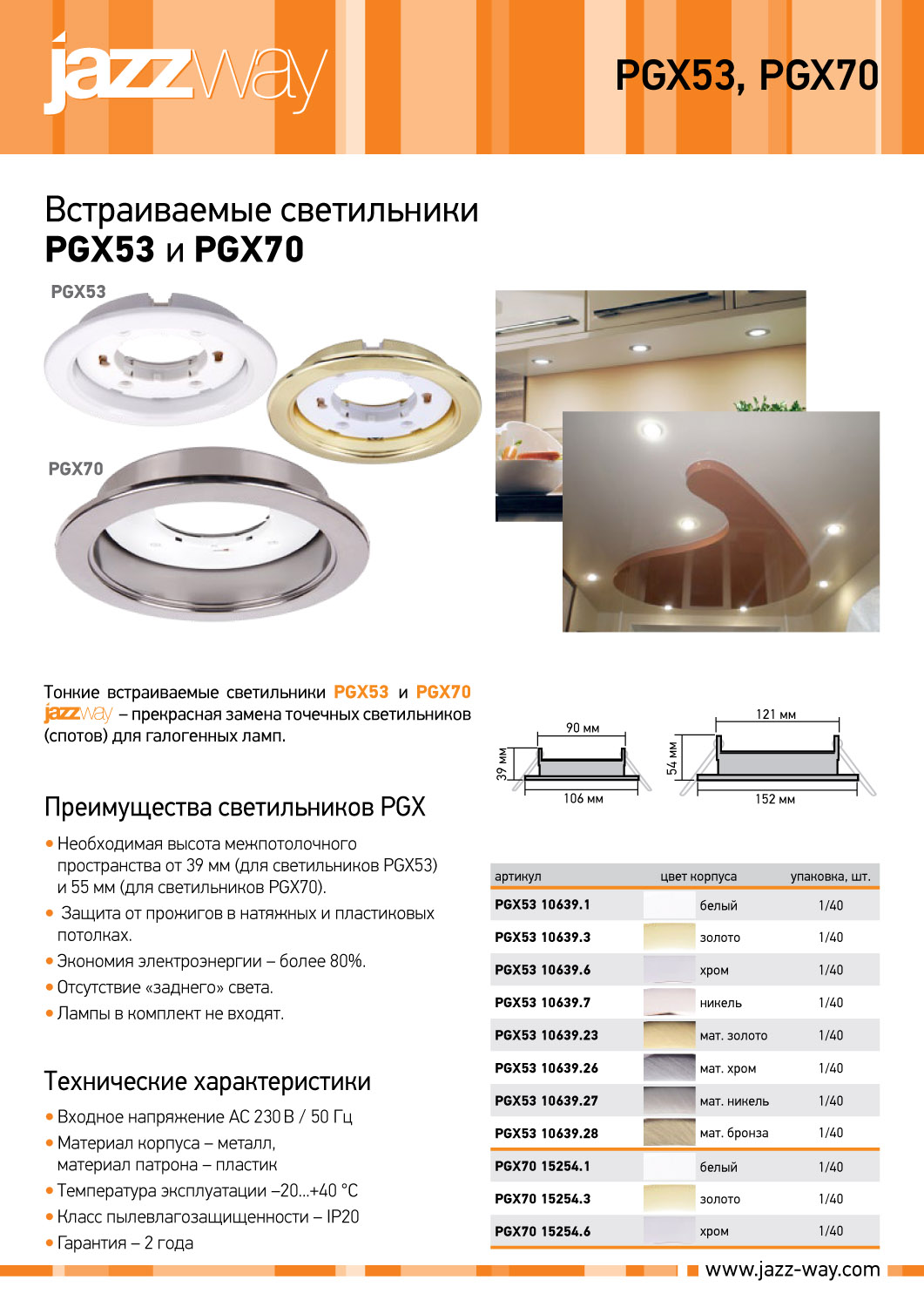 Светильник PGX70 15254.3 40Вт GX70 IP20 121х54мм встраив. глянцевый зол. 1027658 — Электронный компонент