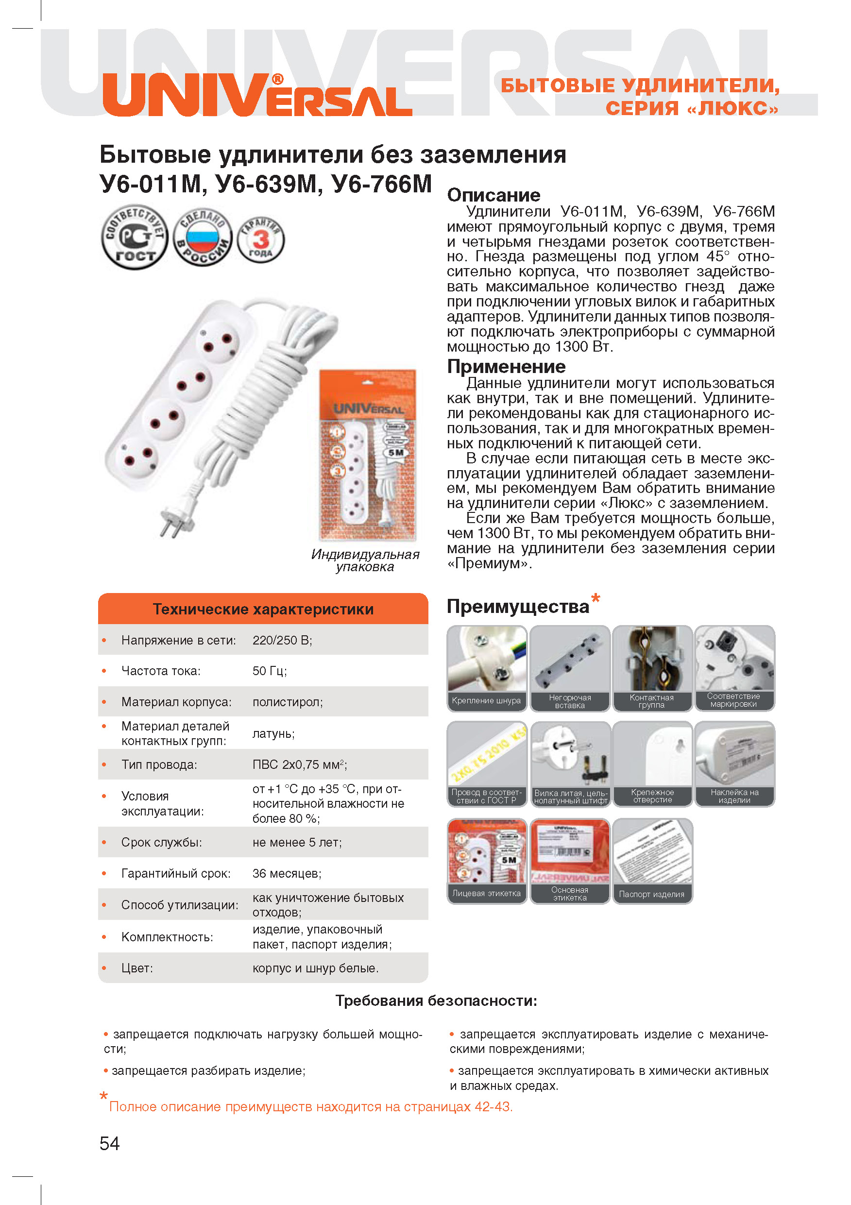 Удлинитель бытовой 4х3м без заземления 6А У6-766М 766м-03 (Удлинитель бытовой 4х3м без заземления 6А У6-766М 766м-03) — Электронный компонент.