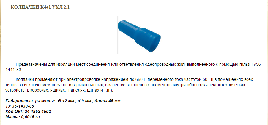 Товар: Колпачок К 441 УХЛ 2.1 43Б12К441У (ID: 803061)
