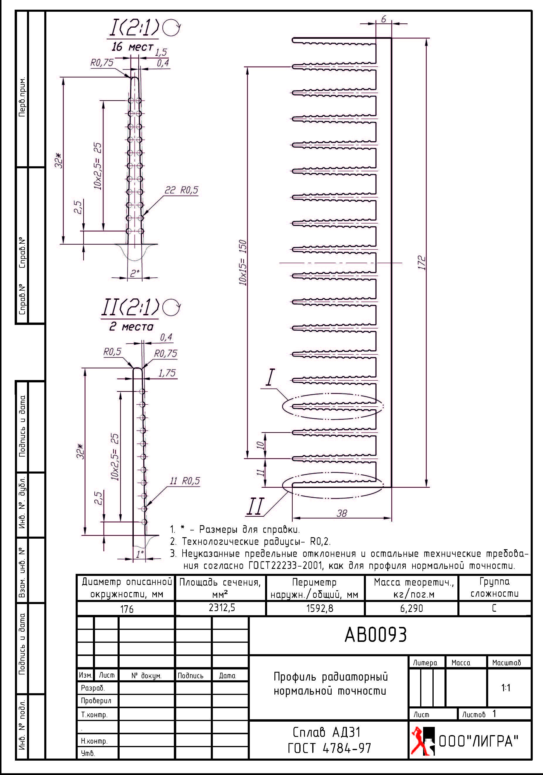 | Описание | Профиль радиаторный прессованный нормальной точности |