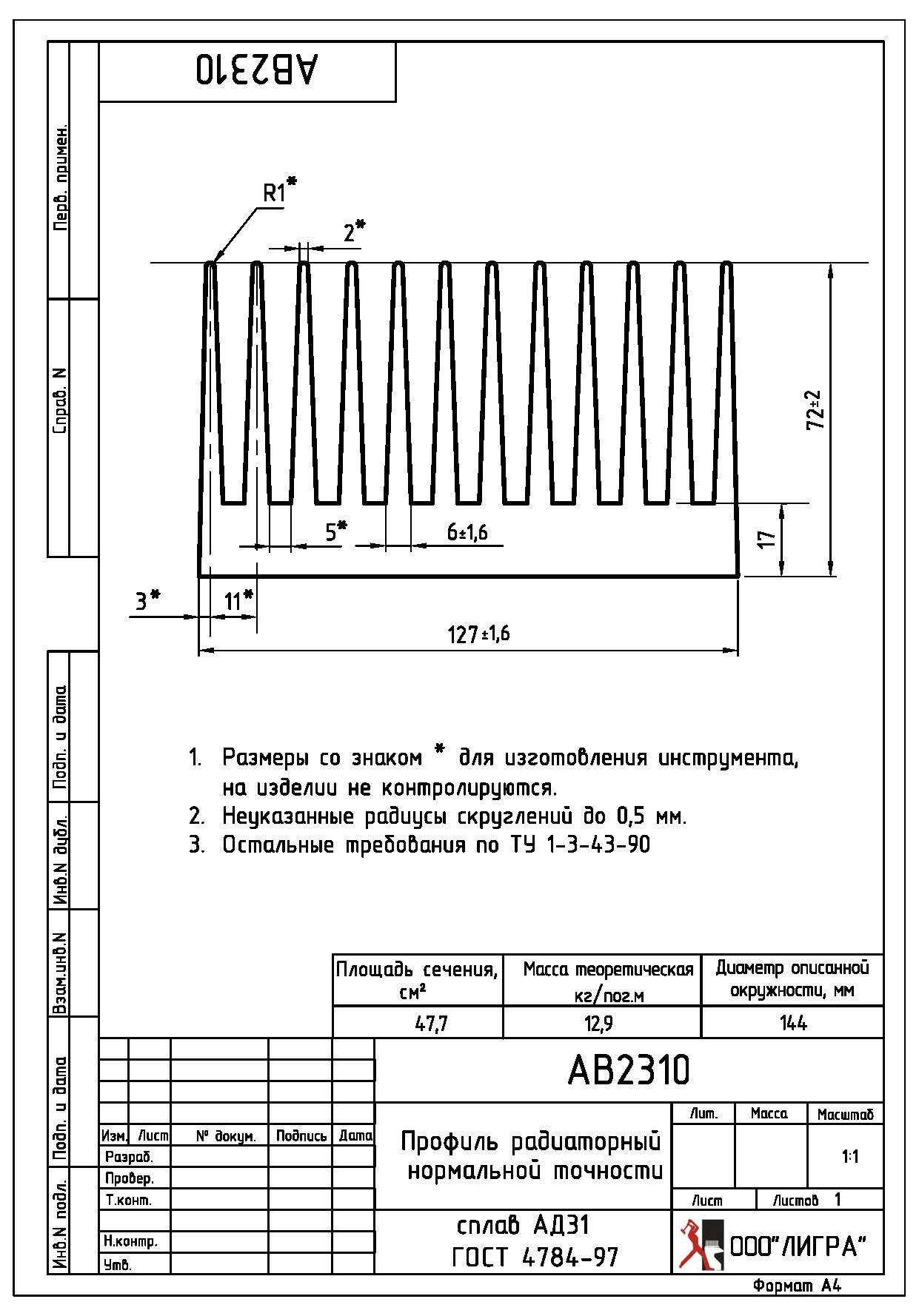 | Описание | Профиль радиаторный прессованный нормальной точности |