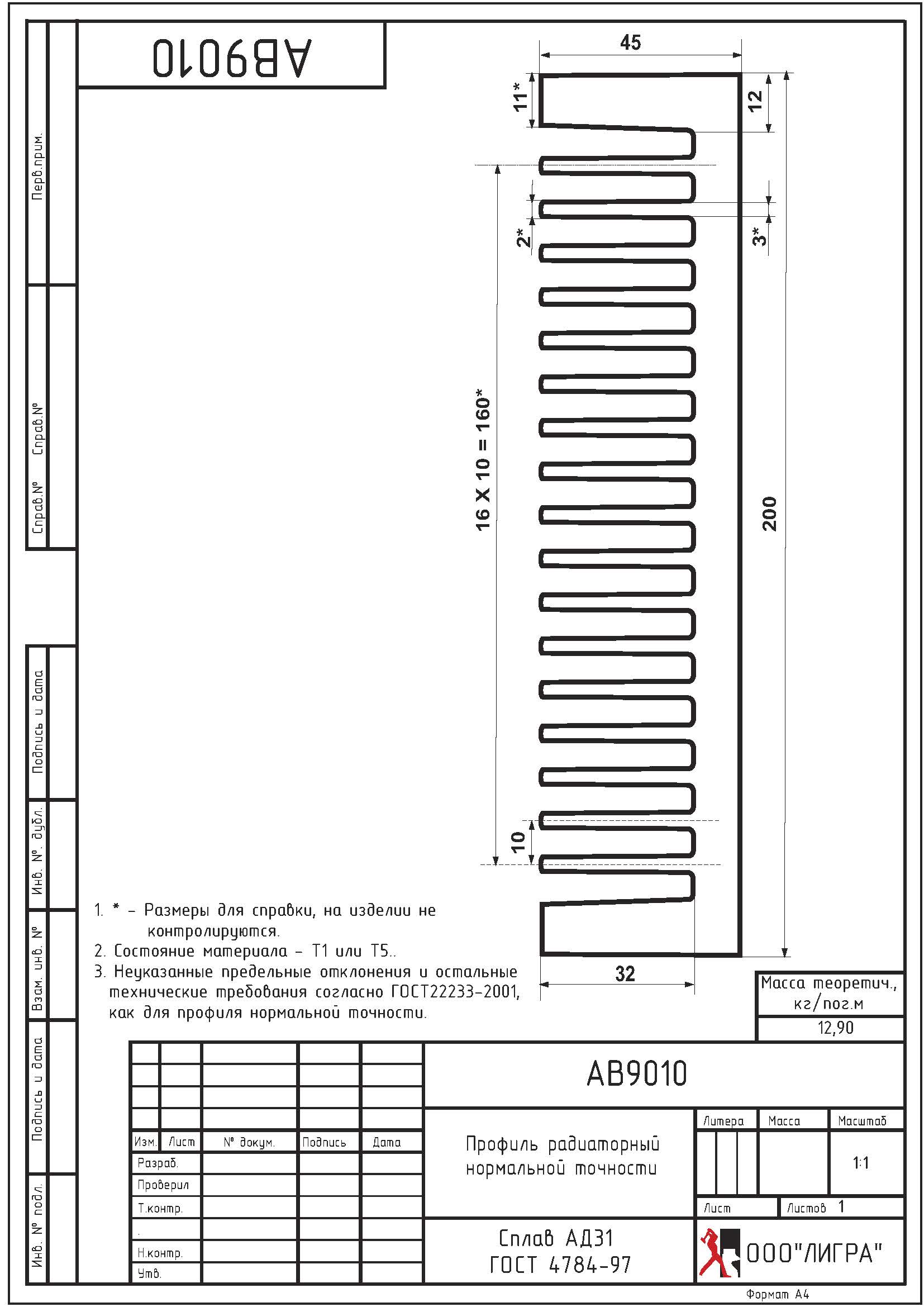 | Описание | Профиль радиаторный прессованный нормальной точности |