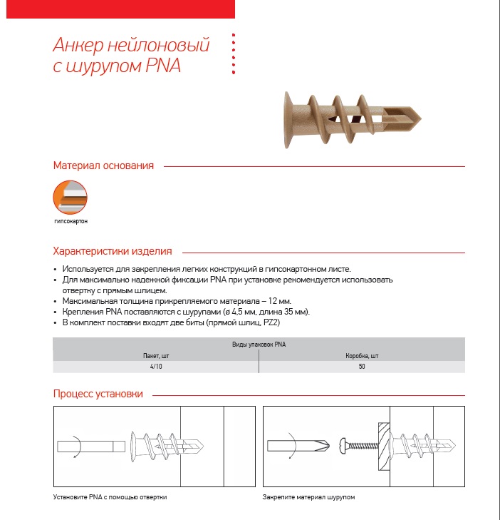 Купить Анкер PNA нейлоновый с шурупом (50шт) 44746 оптом или в розницу в Москве, доставка по России. Цена от 362,94 руб.. Условия оплаты и доставки уточняйте у менеджеров.